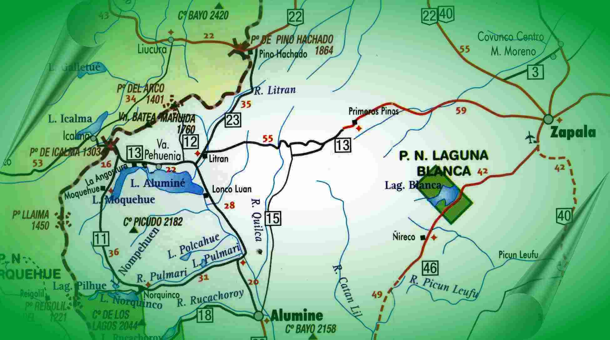 cristalino lago Aluminé y con milenarios bosques de araucarias o pehuenes,
